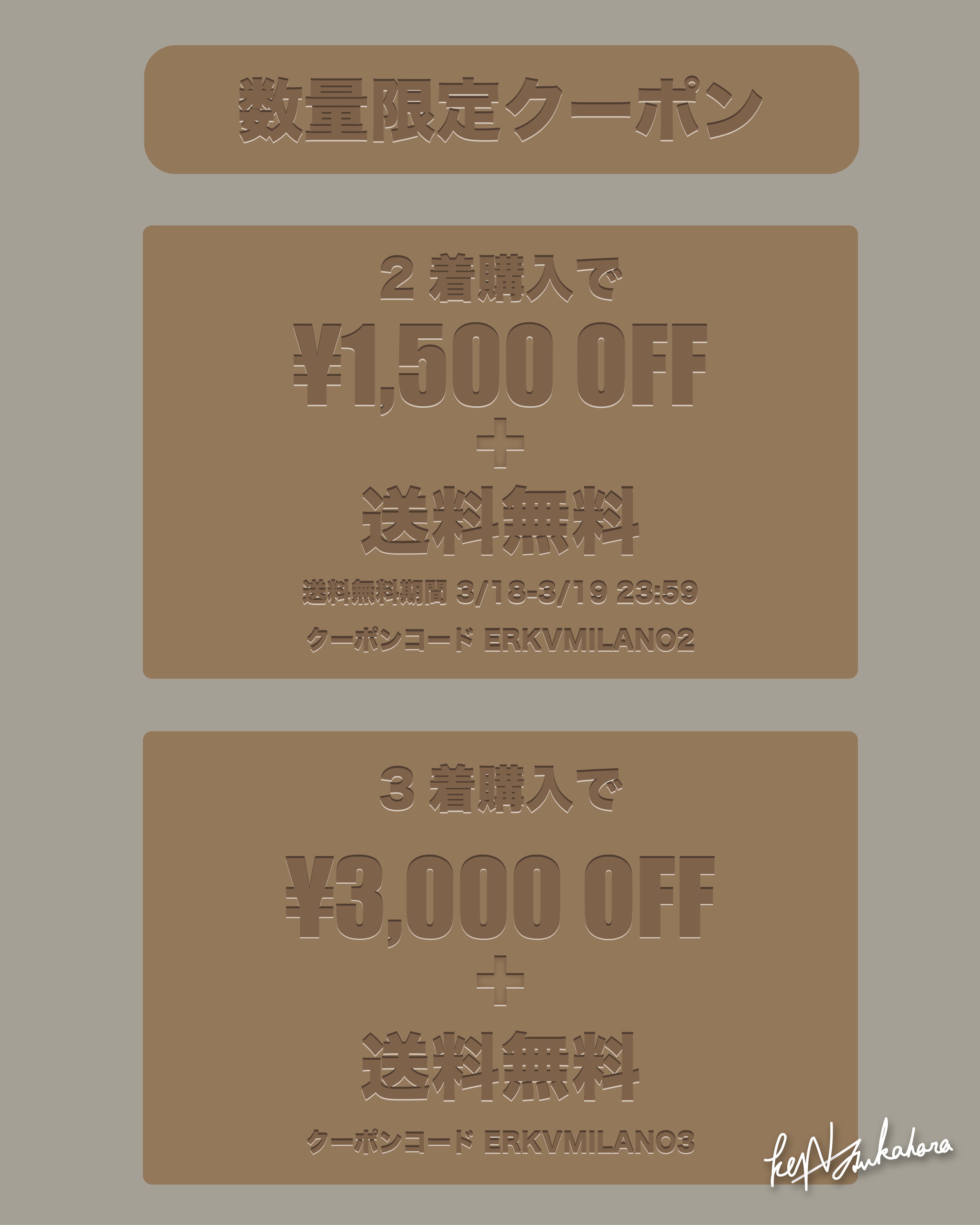 2着購入で¥1,500OFF+送料無料(送料無料期間は3/19 23:59)まで