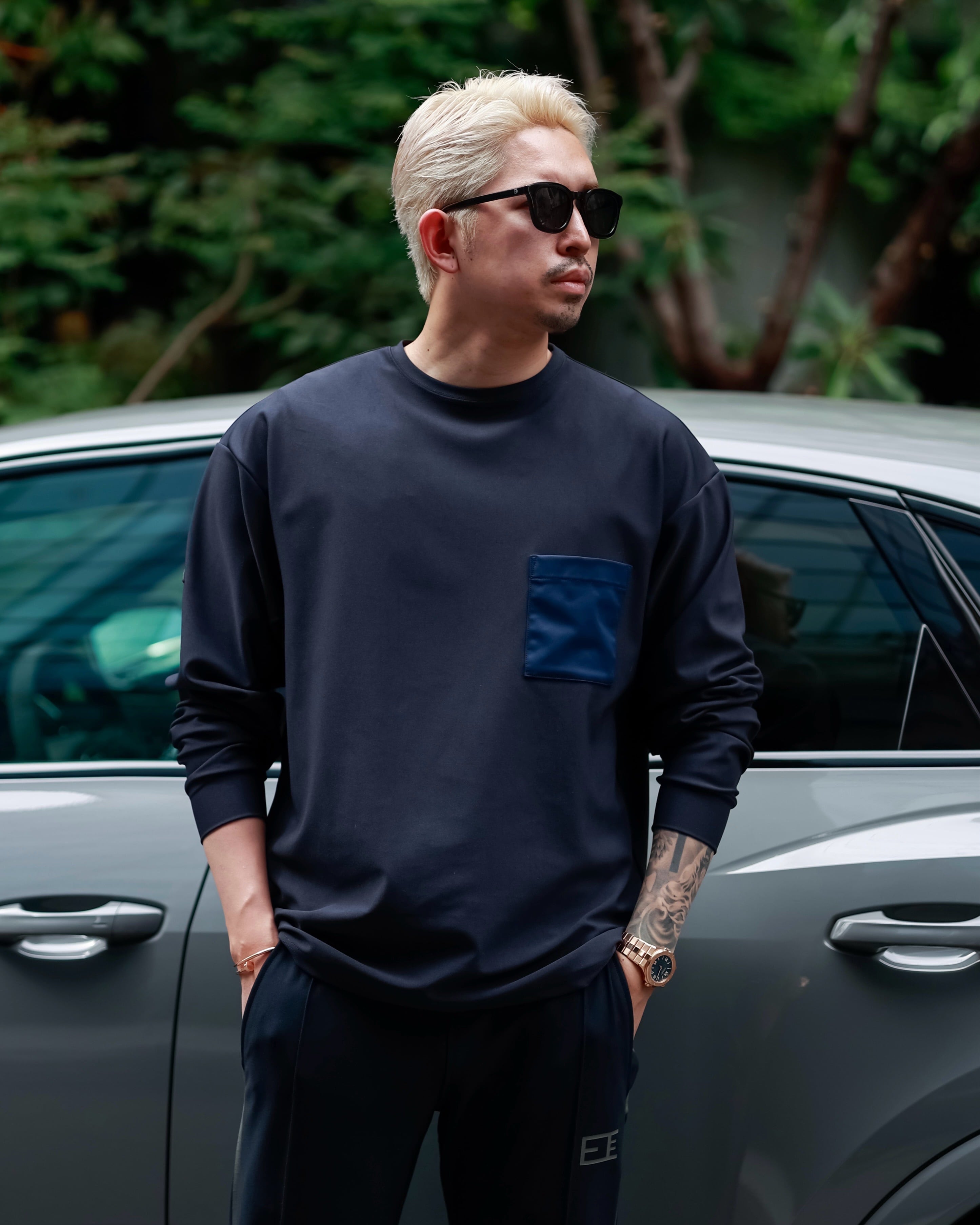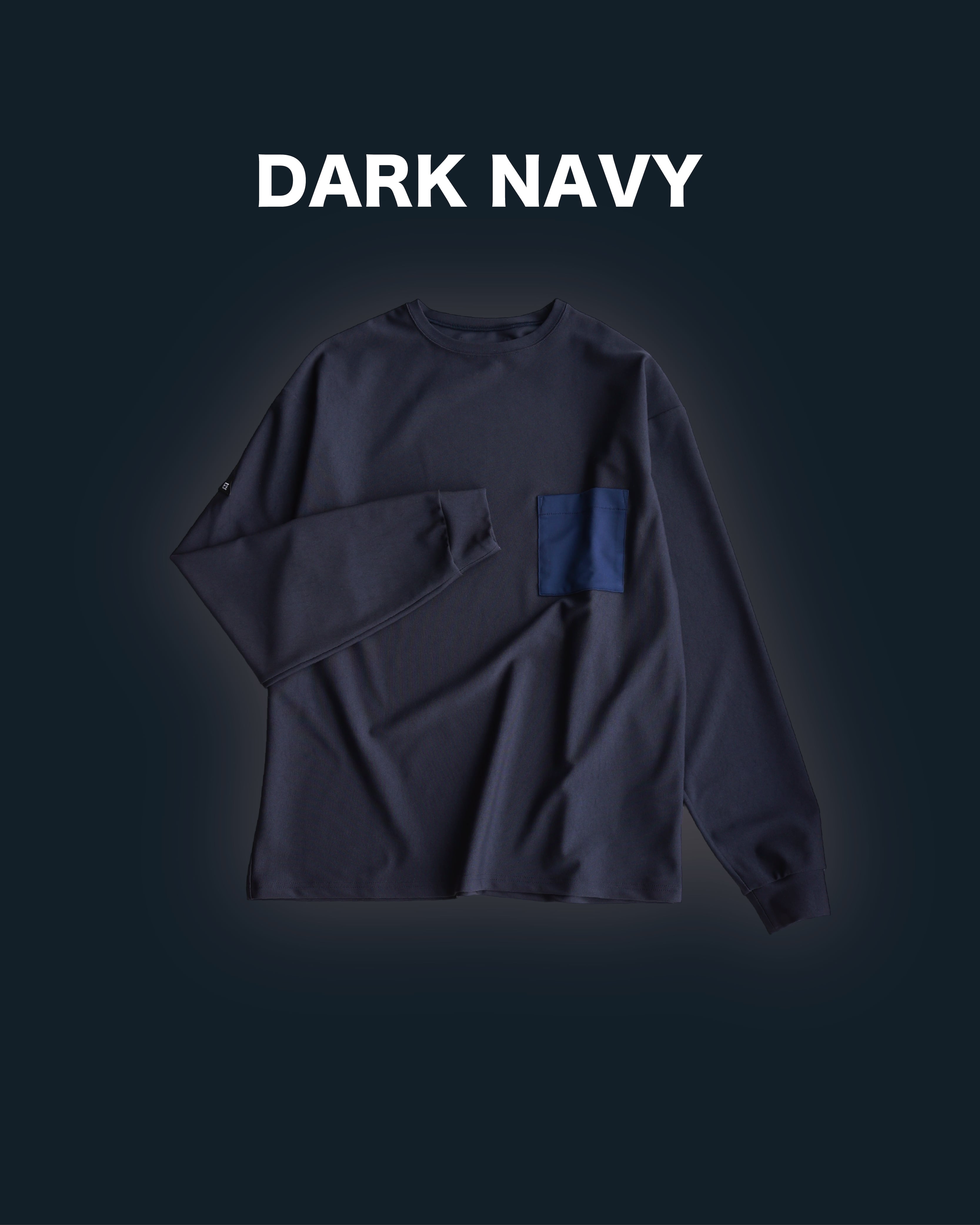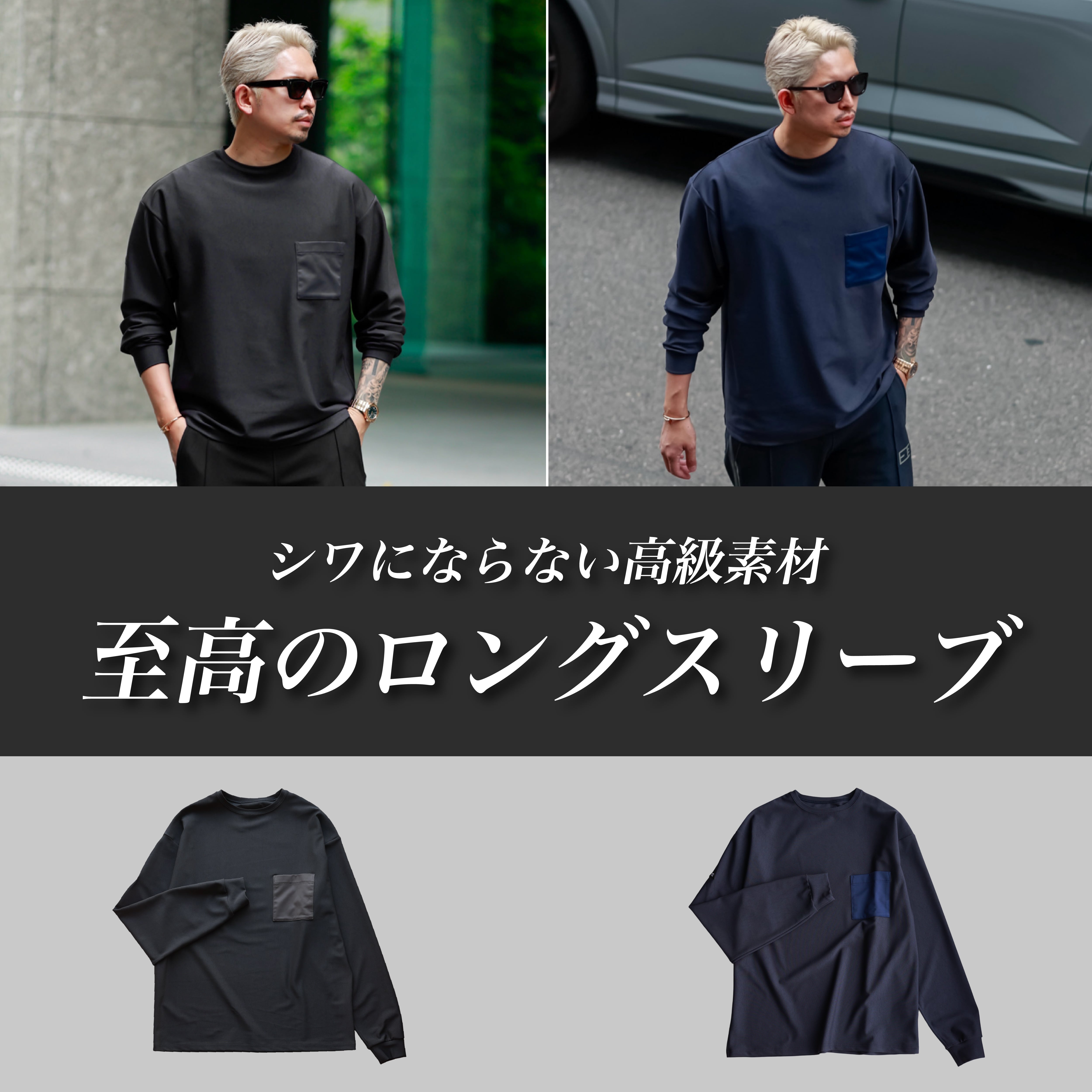 以前のロングスリーブをよりスタイリッシュな着こなしにする為、もたつきのある腕周りを少し細く、そして着丈もやや短めにすることで通常のロングスリーブには出ない一枚で決まるシルエットに。