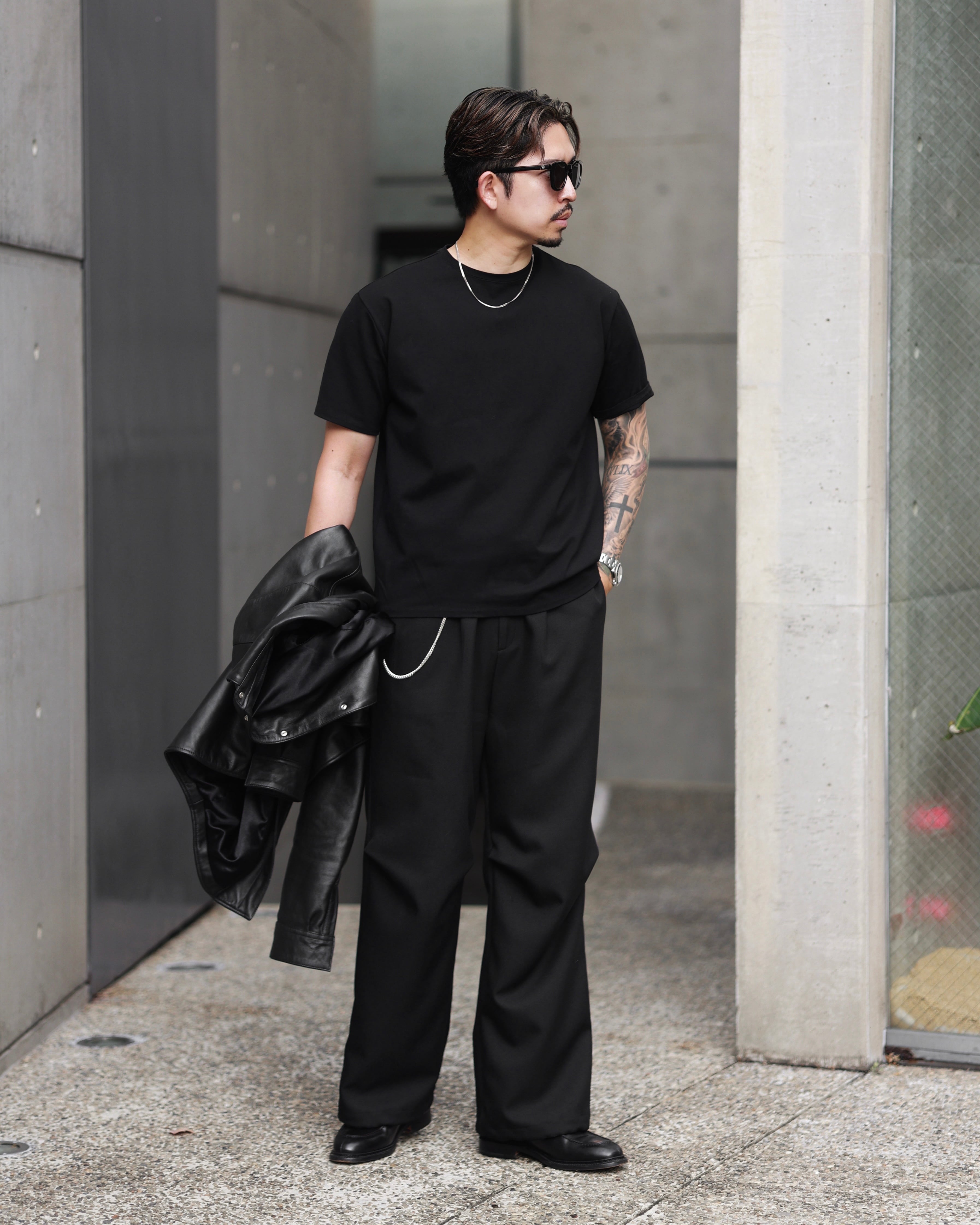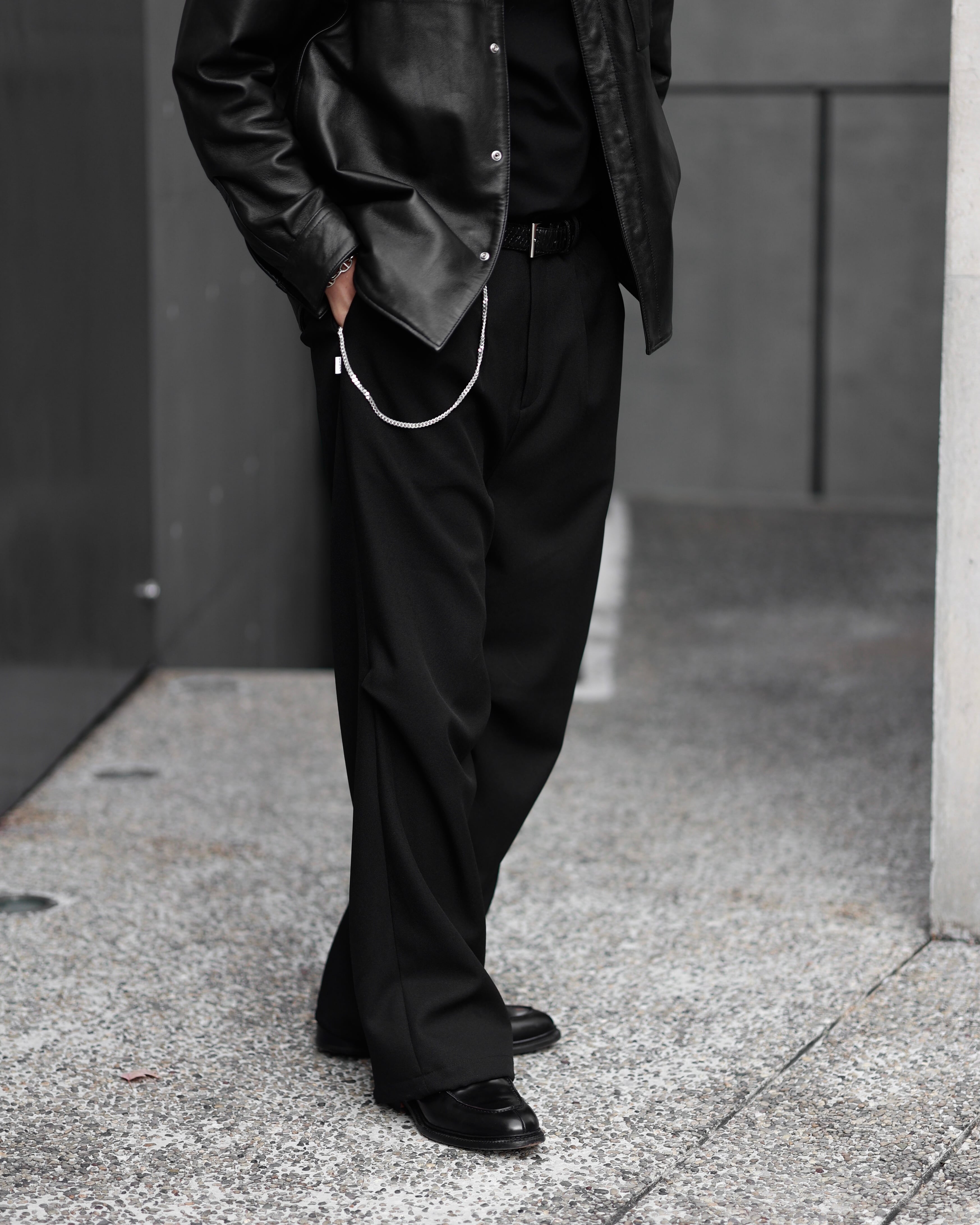 【普段使いにピッタリな品の良いワイドスラックス】