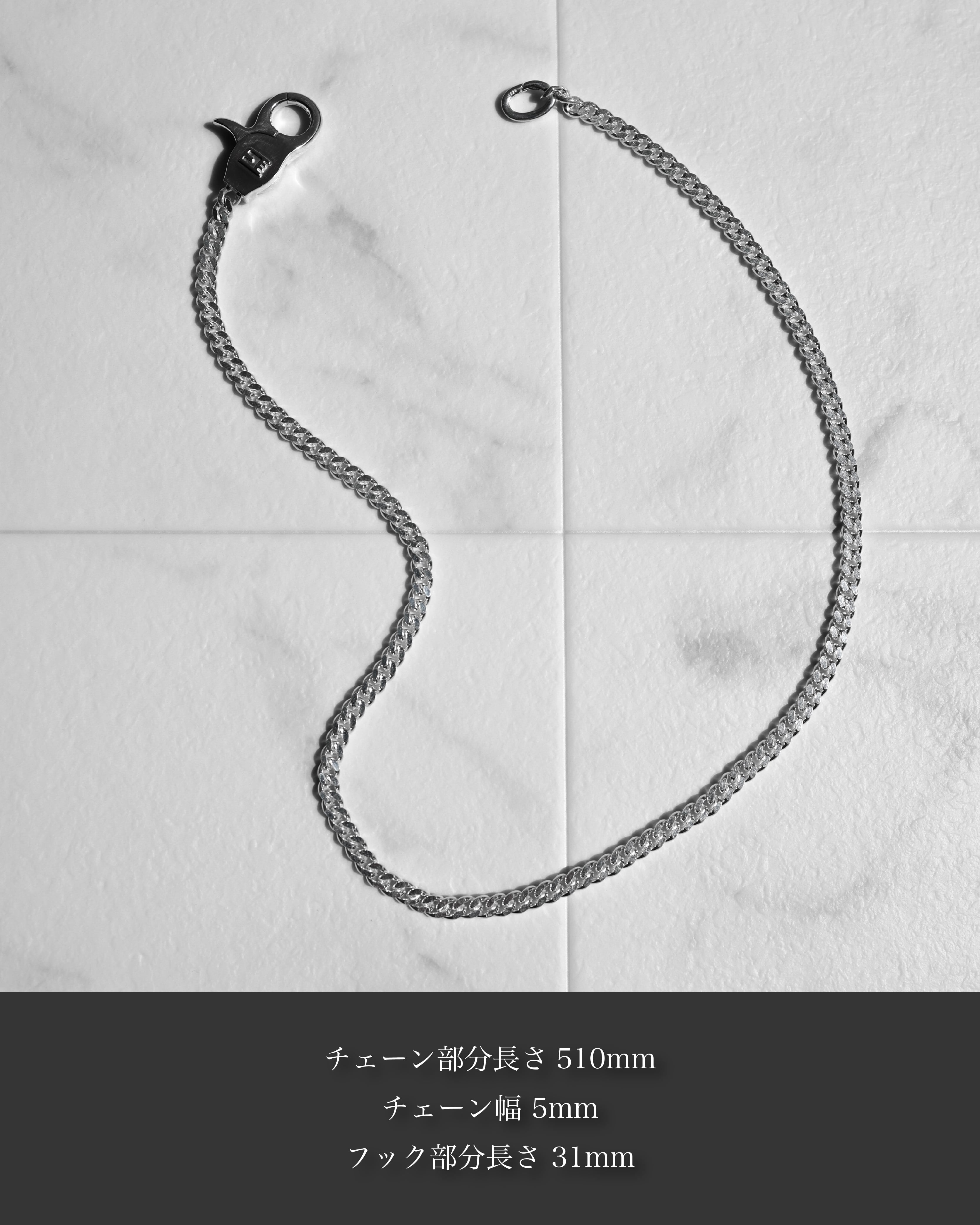 Silver925製のウォレットチェーンは目の詰まった5mm幅にすることで男らしさ以外にも品があり、悪目立ちしないのが特徴。