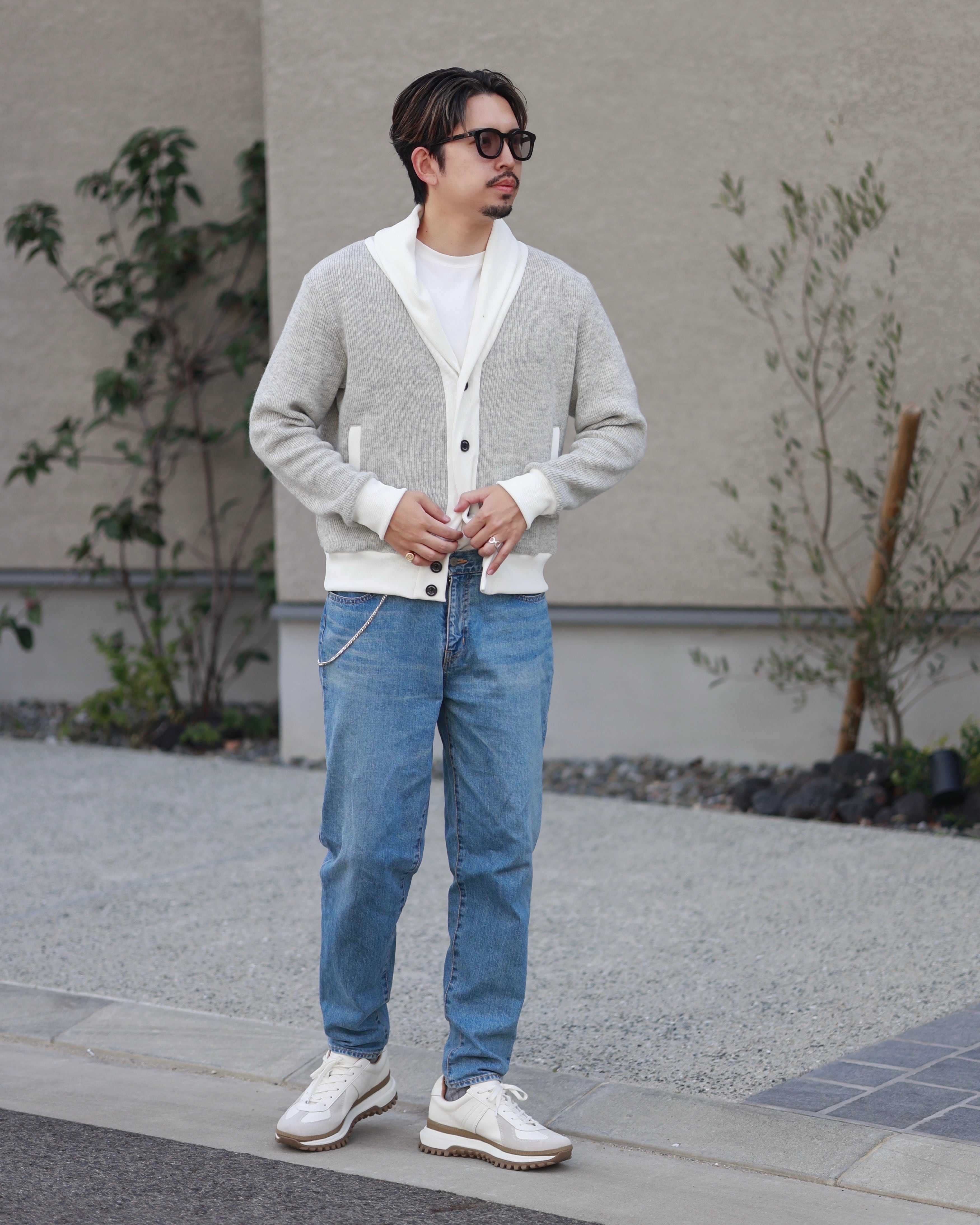 肌側に柔らかな綿素材を使用することでWOOLのチクチク感のない着心地の良いカーディガンに仕上げた。