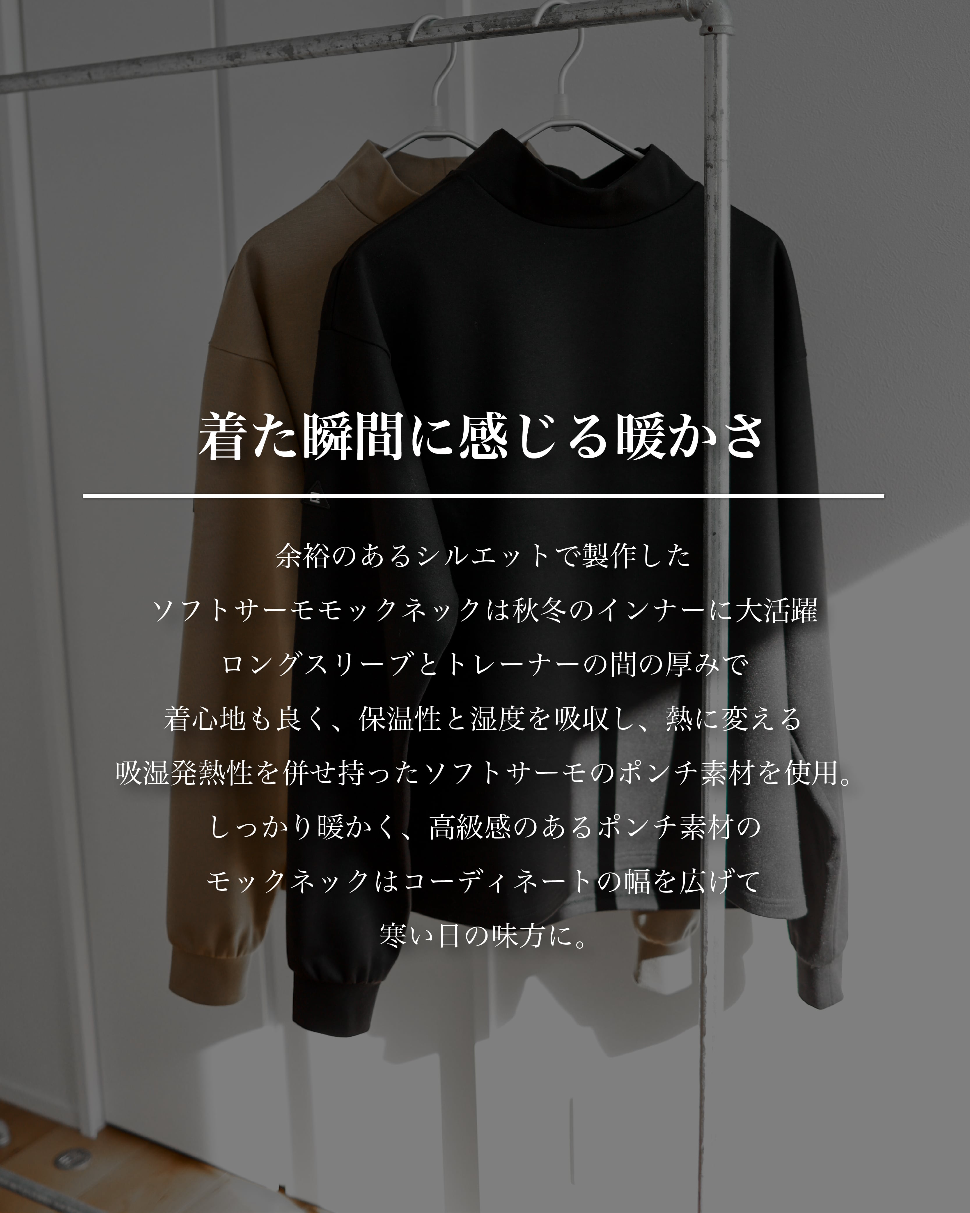 秋冬のインナーに大活躍のソフトサーモモックネック。