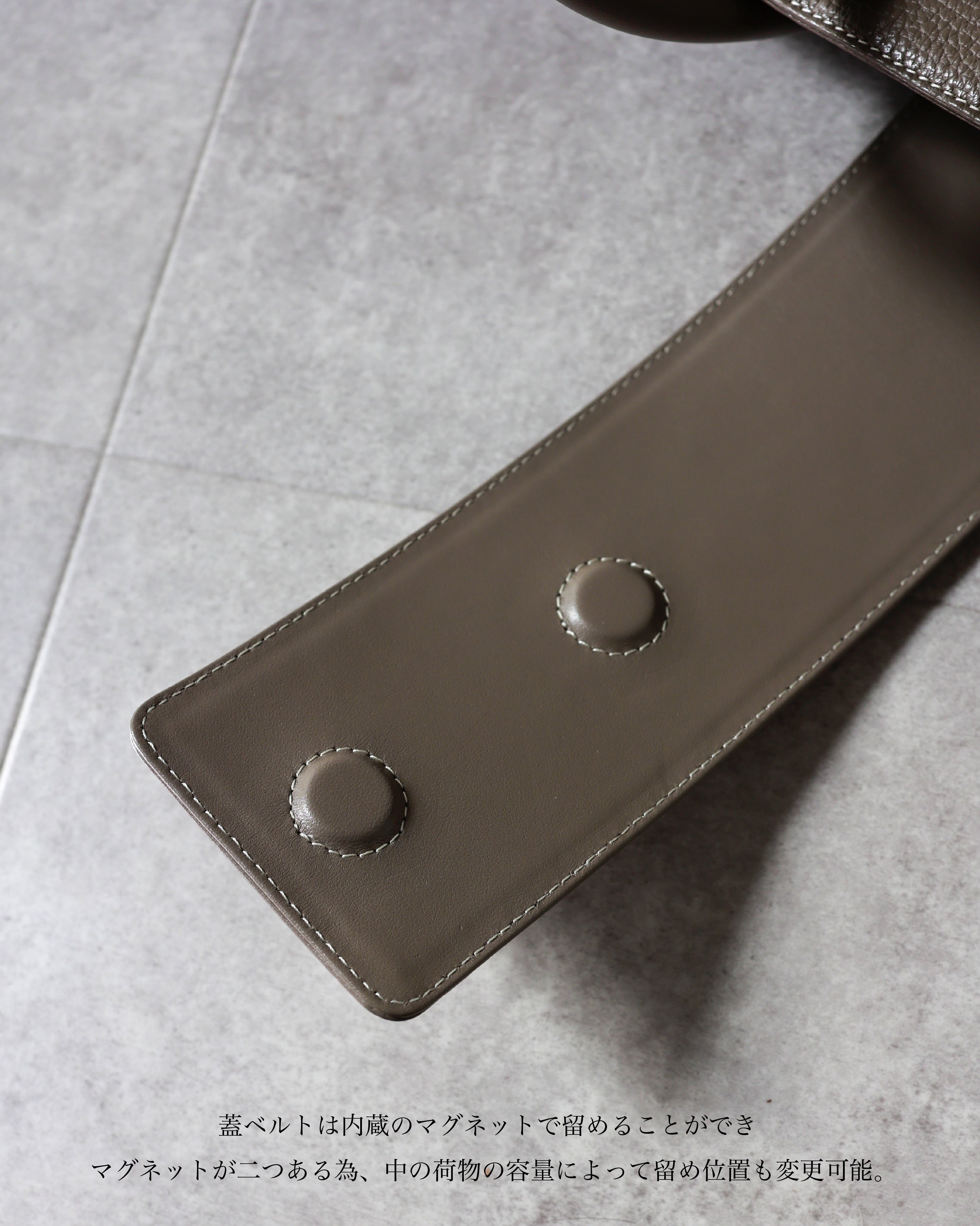 マグネットが二つある為、中の荷物の容量によって留め位置も変更可能。