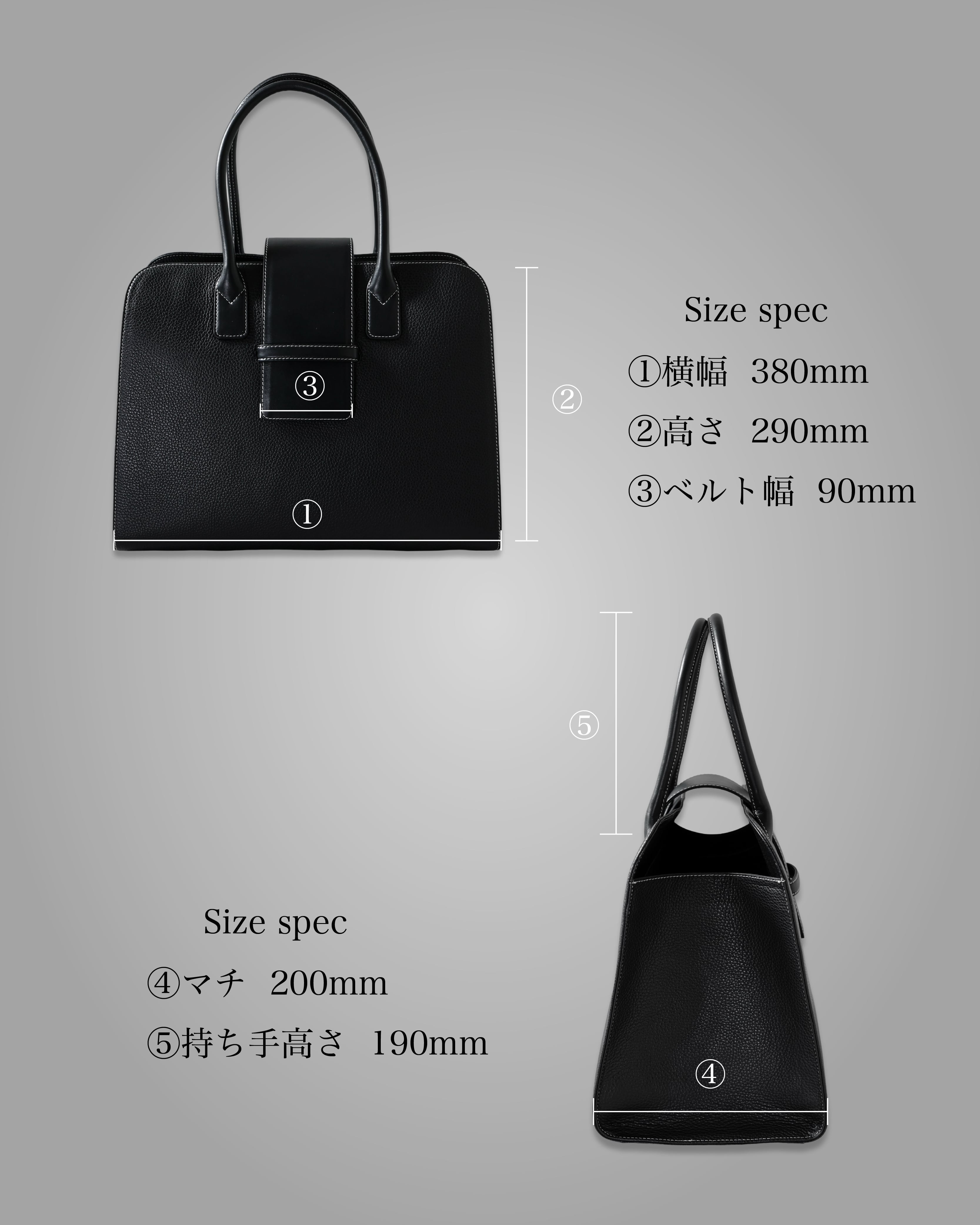 高さ290mm 横幅380mm マチ200mm持ち手高さ190mm ベルト幅90mm