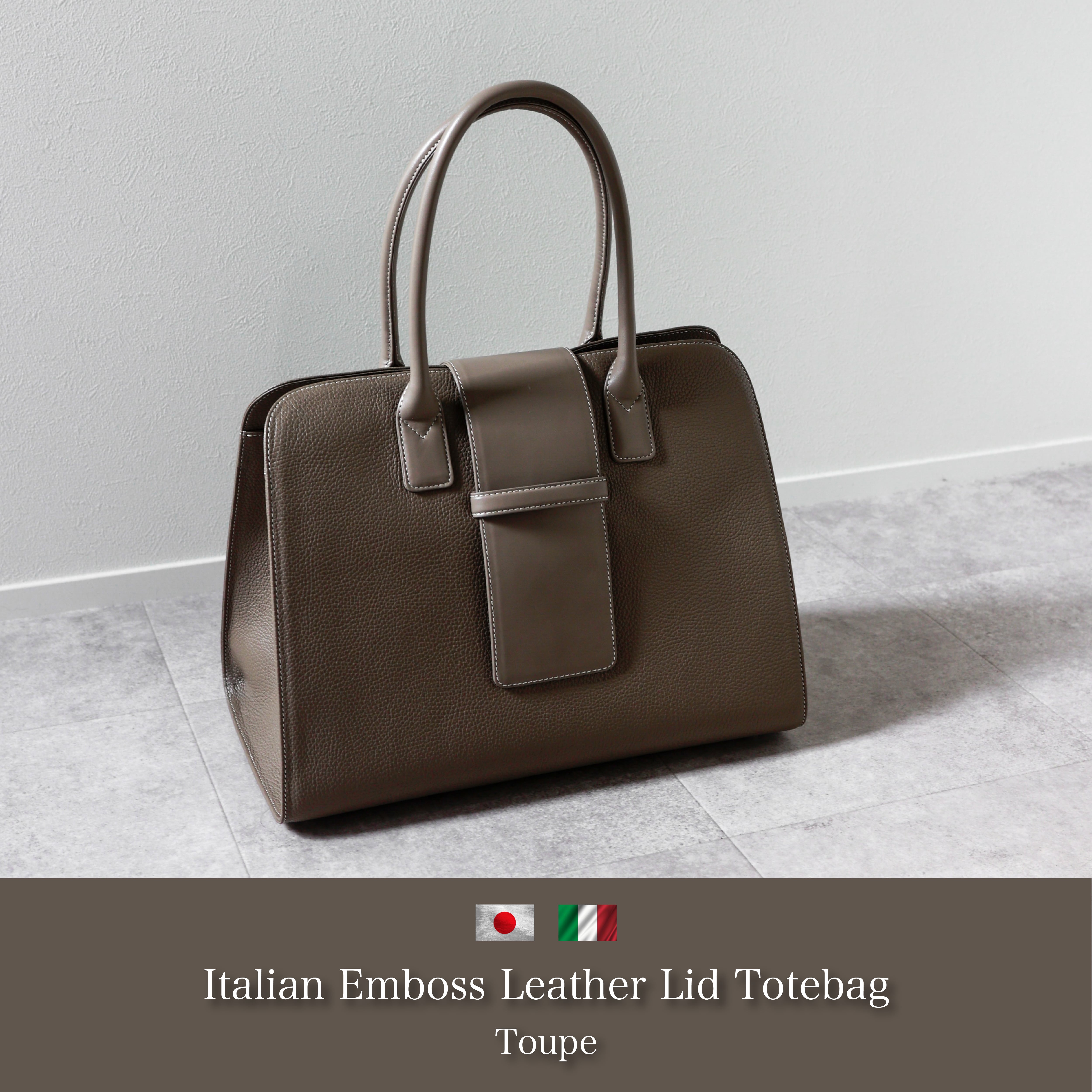 【限定50点特別価格】Italian Emboss Leather Lid Totebag【Toupe】【イタリア・マストロット社製】