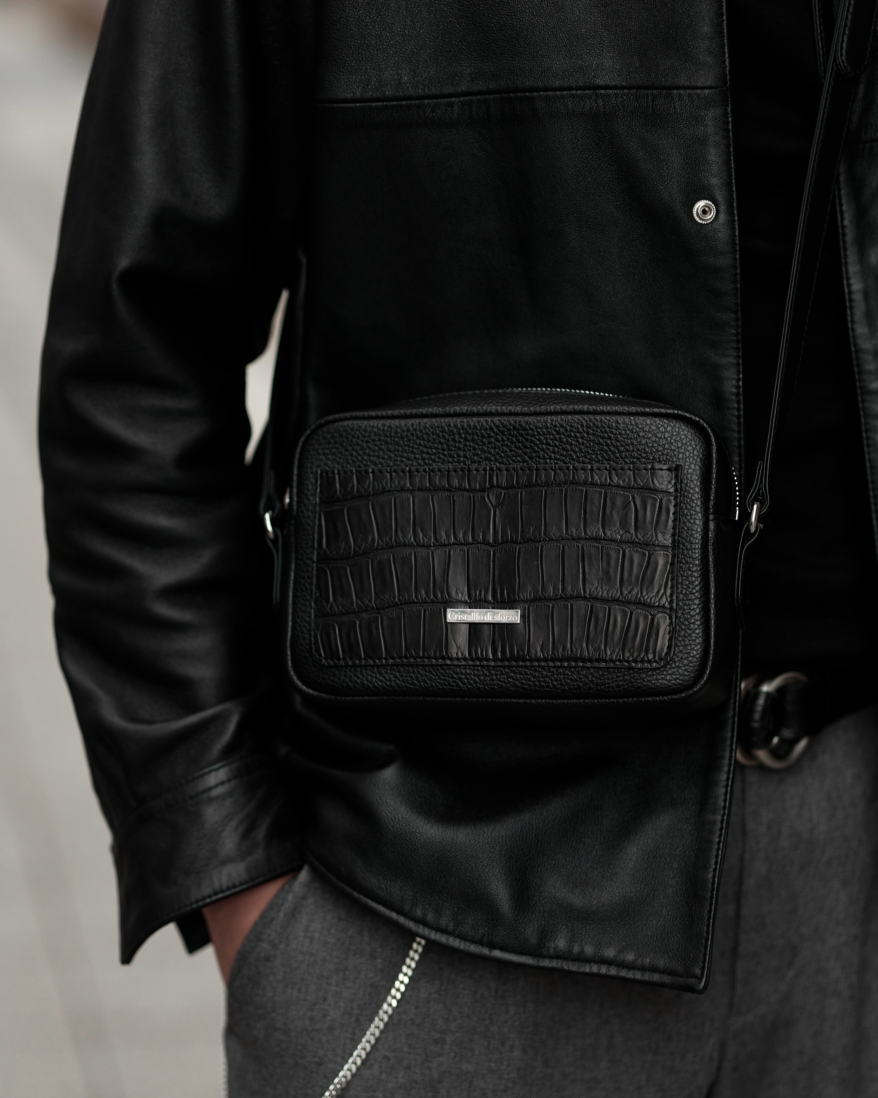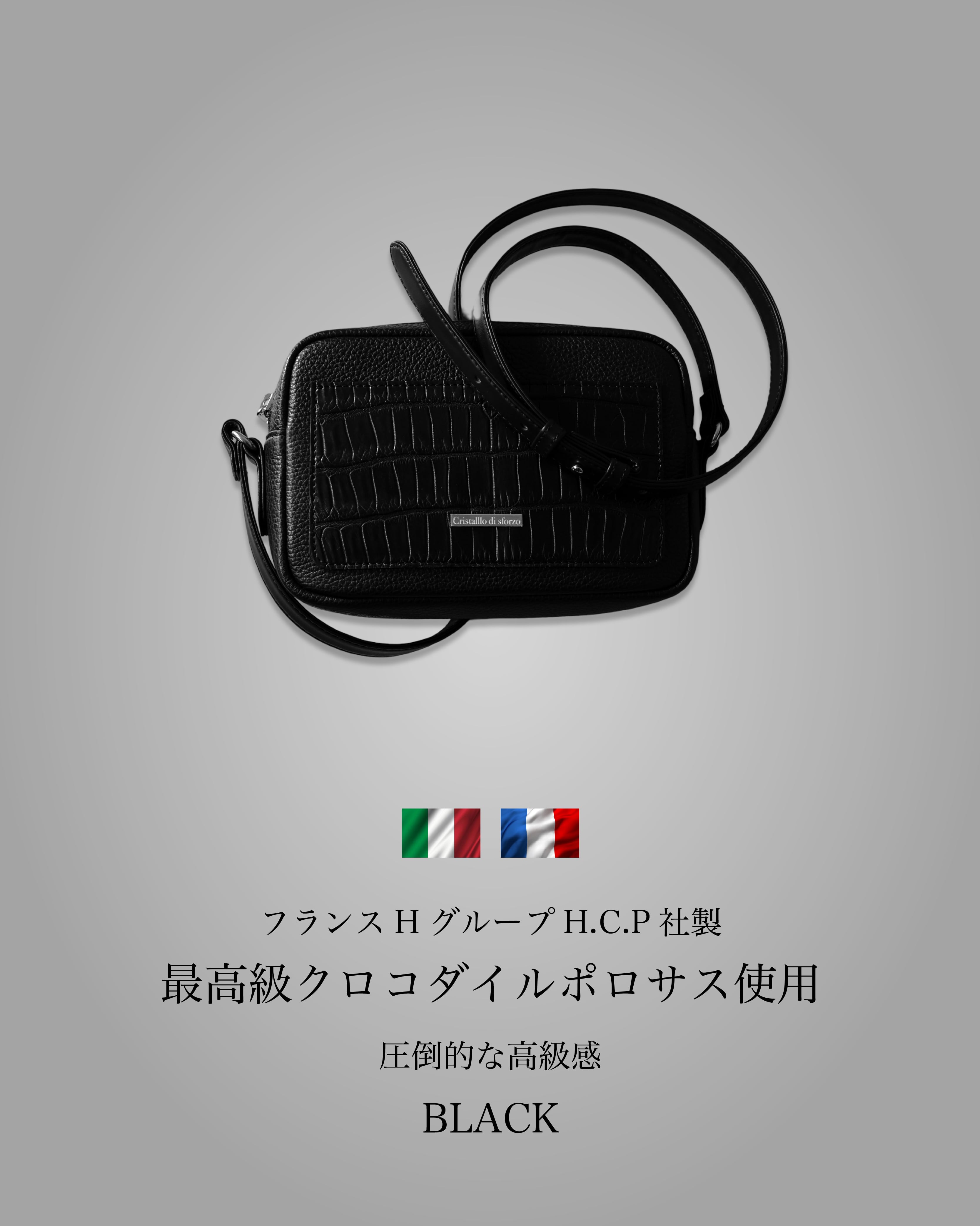 ボディにはイタリアレザーを贅沢に使用し、ポケット部分にはフランス製最高級クロコダイル・ポロサスを使用。
