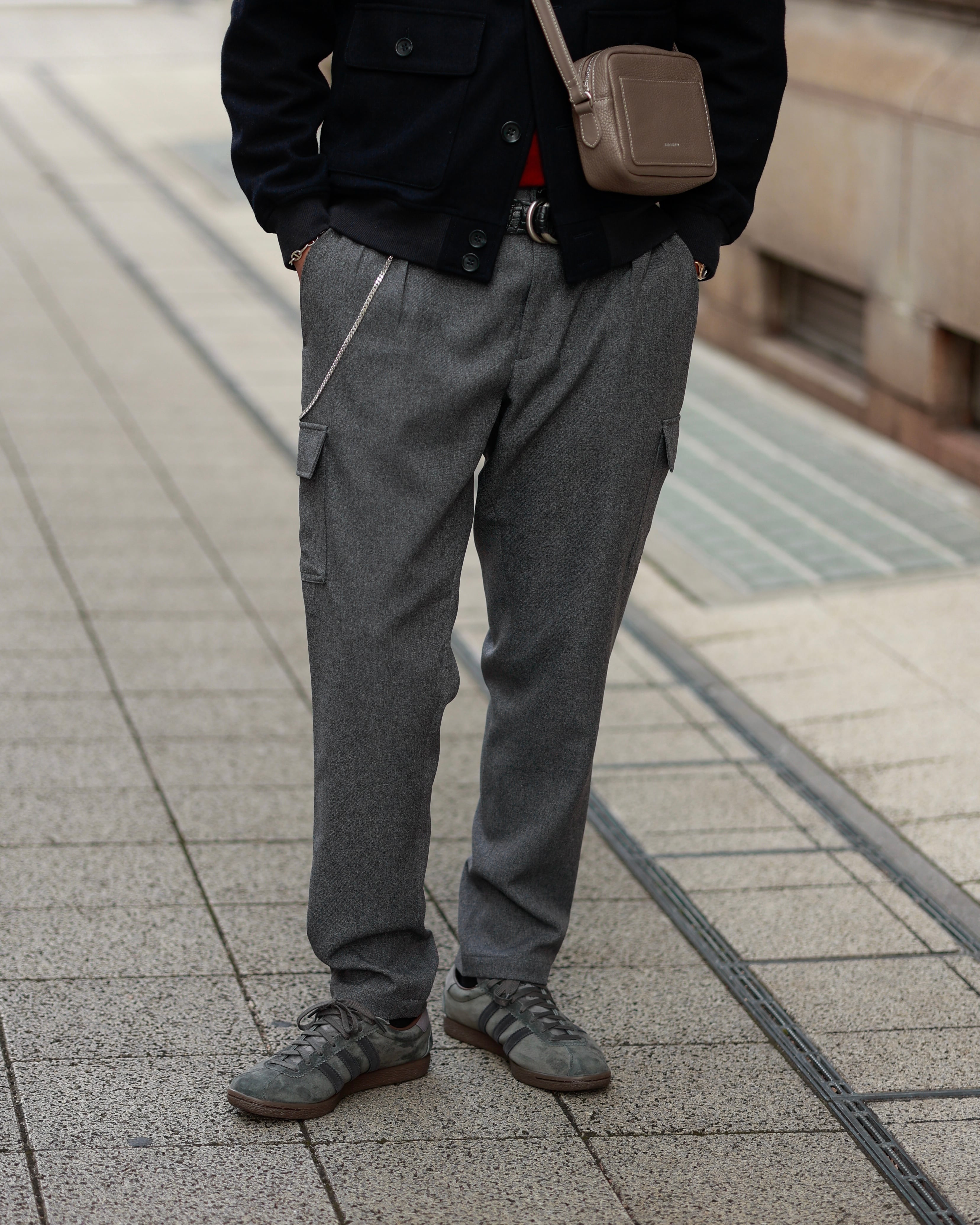 LANATEC®︎素材を使用し、表情、シルエット、履き心地、イージーケア全てに拘った。