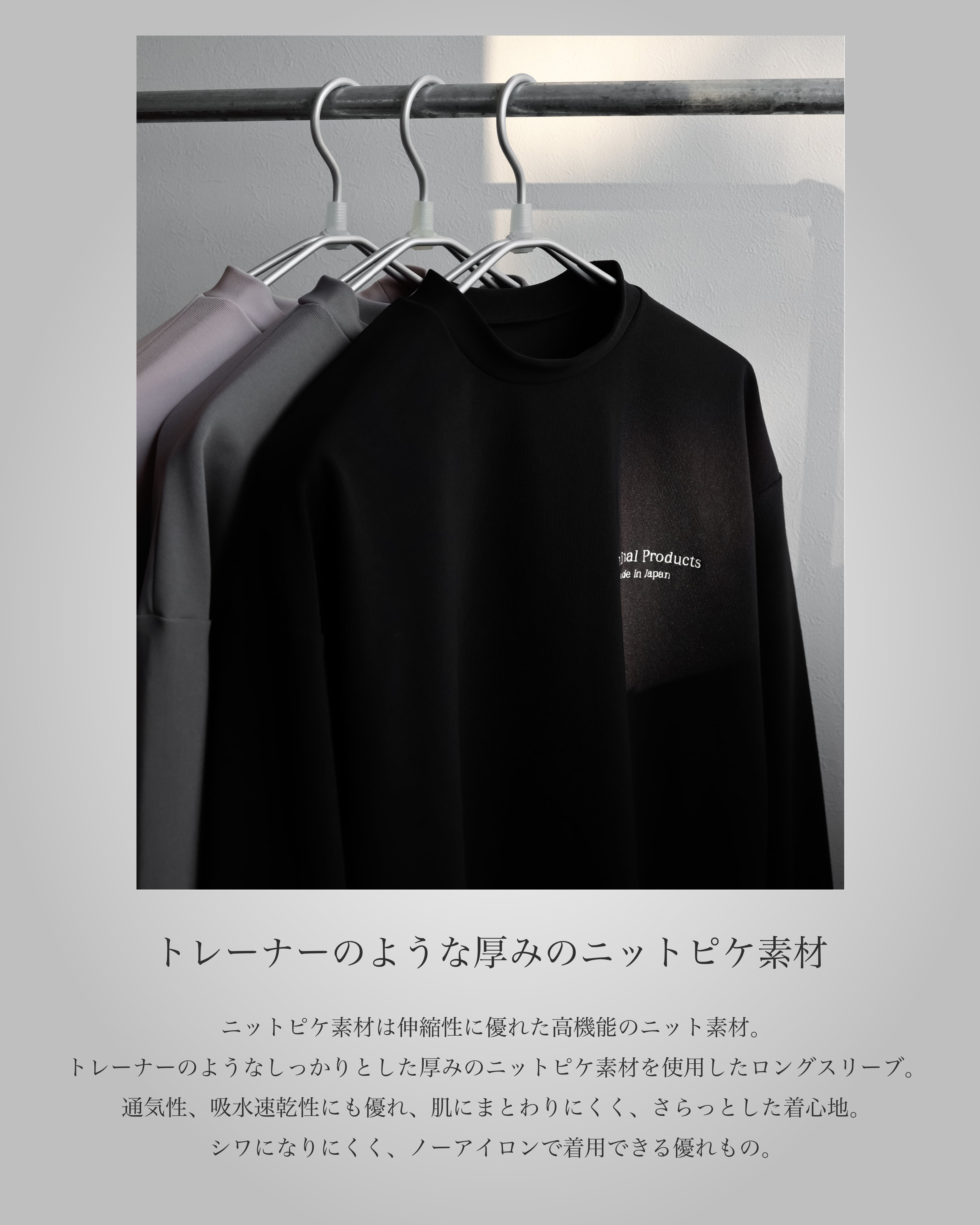 トレーナーのようなしっかりとした厚みのニットピケ素材を使用したロングスリーブ。