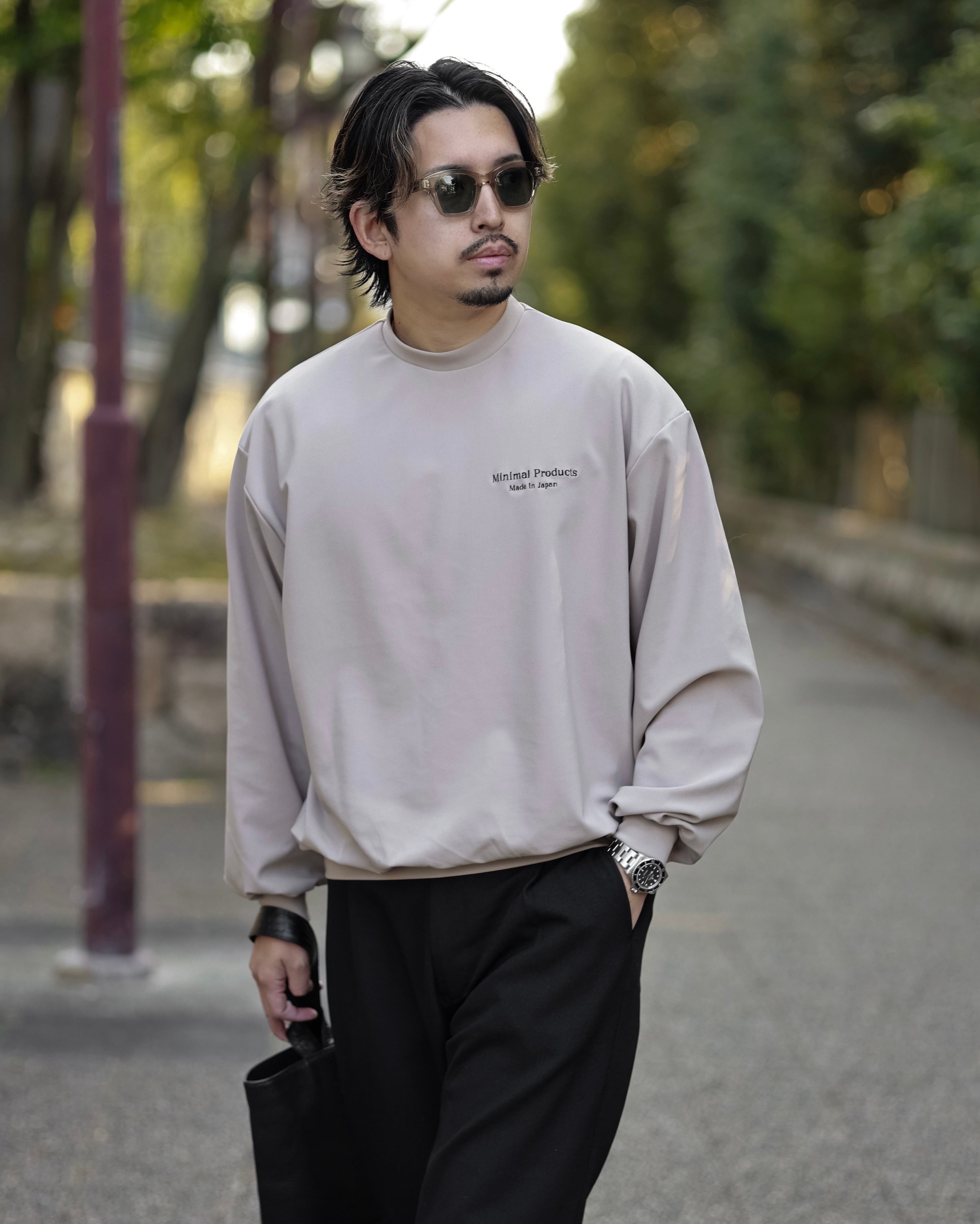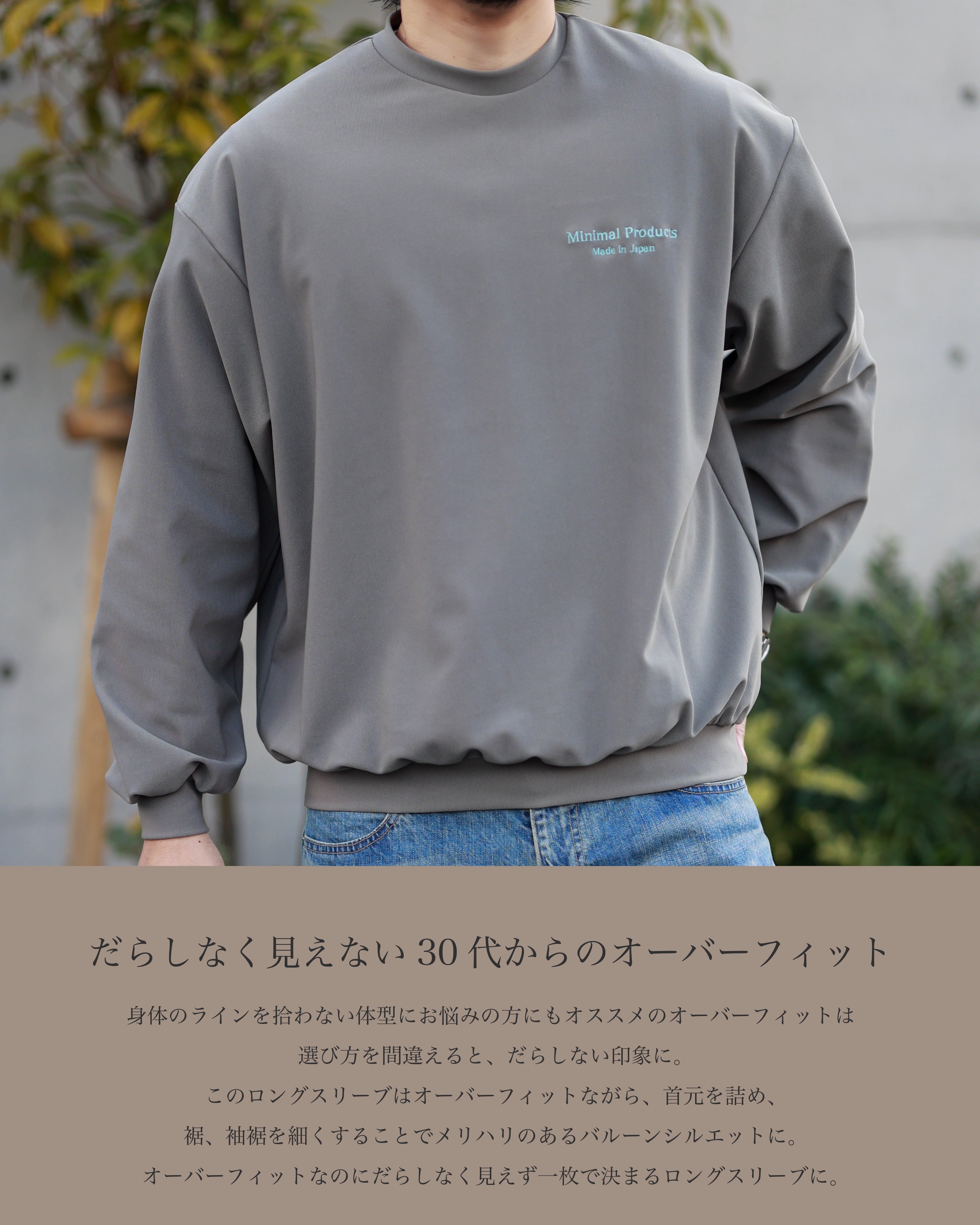 オーバーフィットなのにだらしなく見えず一枚で決まるロングスリーブに。