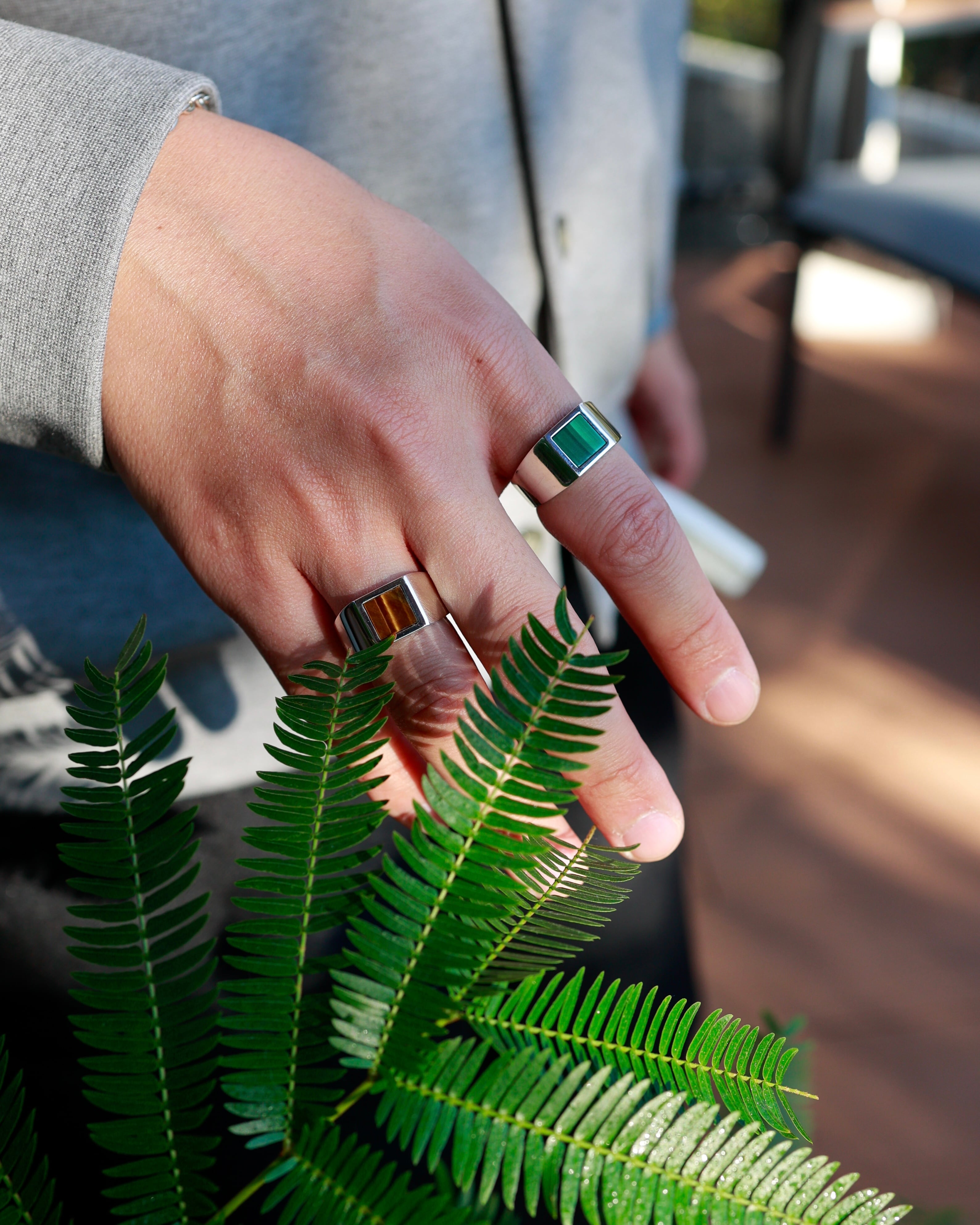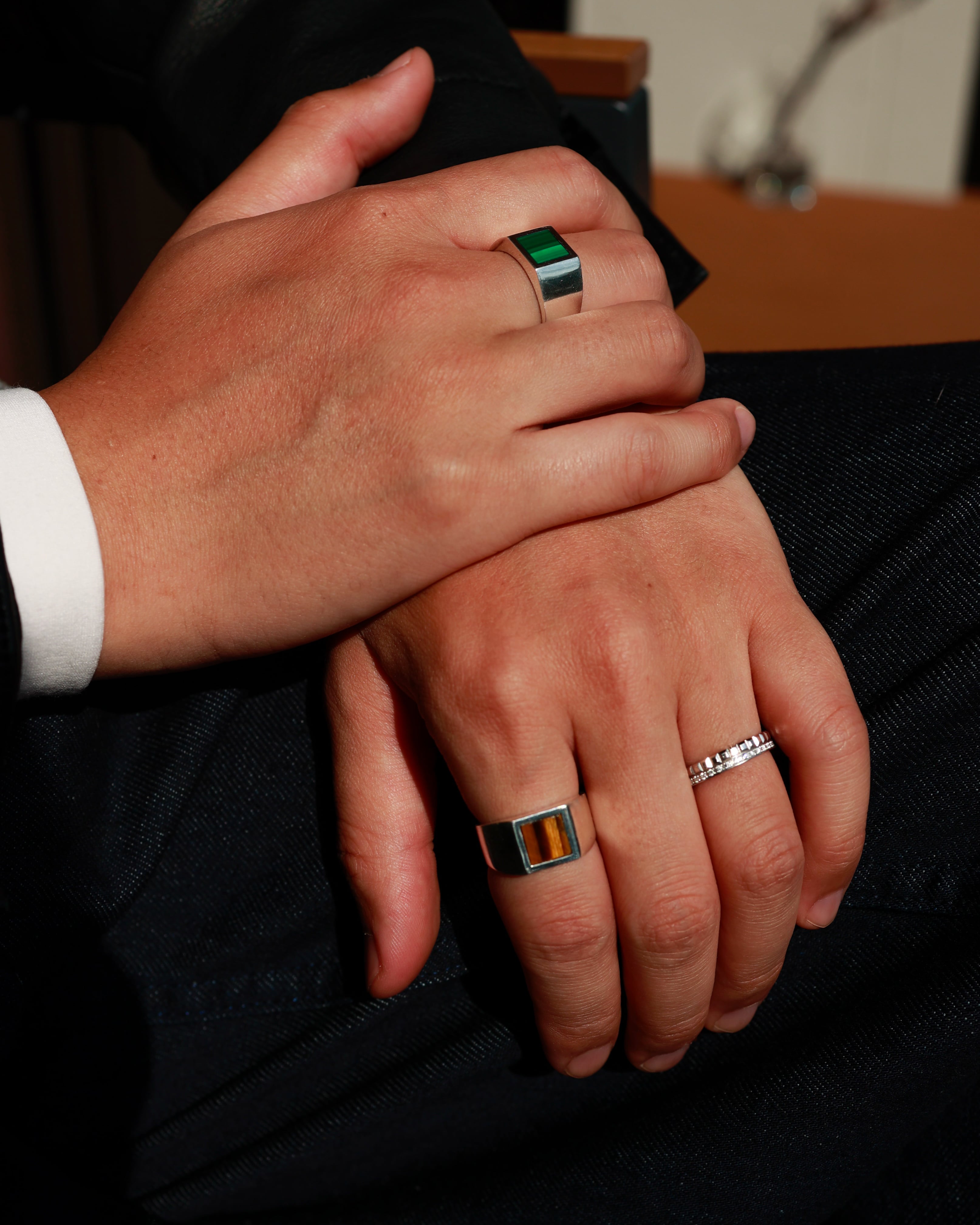 シルバー925製のしっかりとした重みながら、薄めの設計で日常でさりげなく使えるスクエア型のシグネットリング。