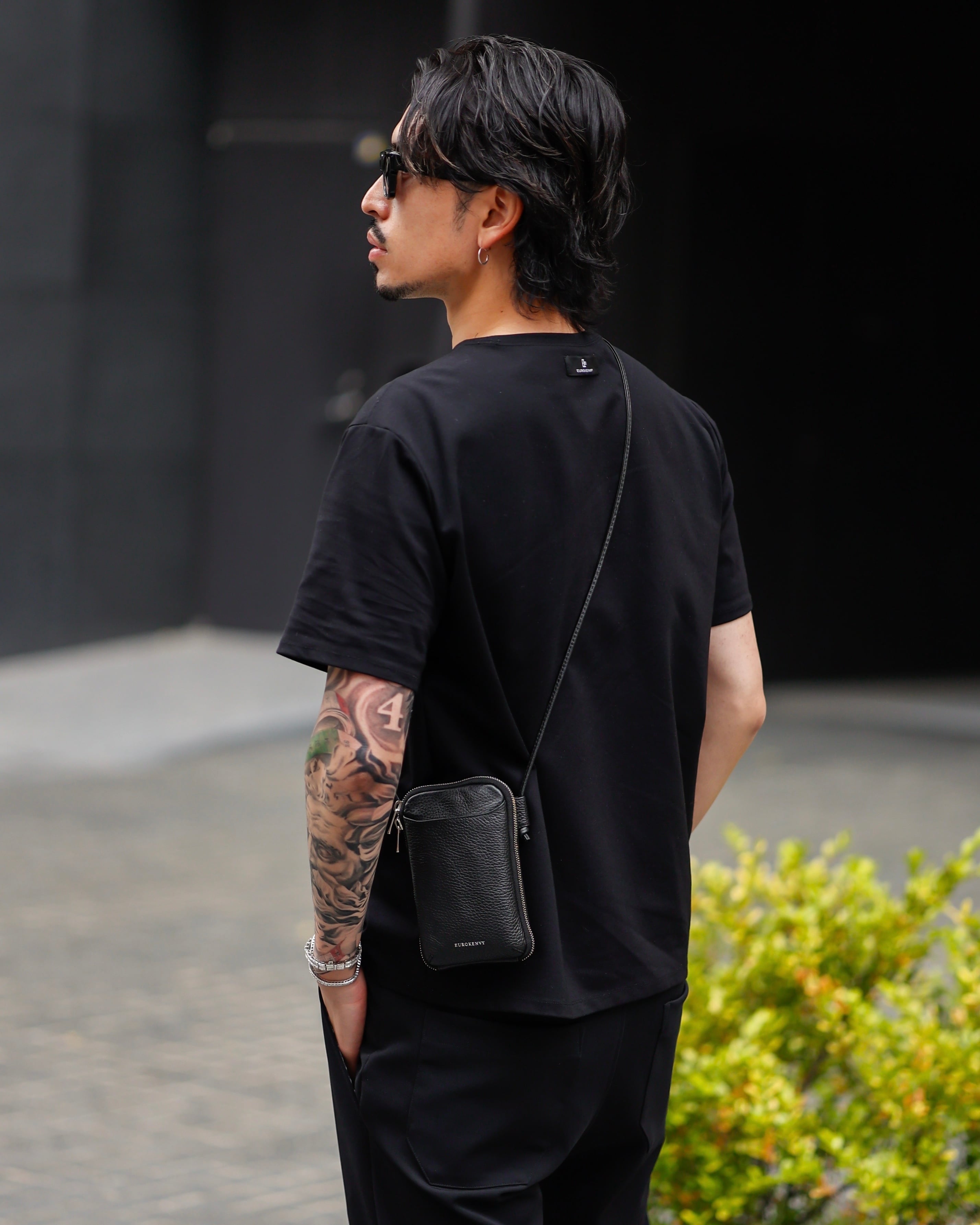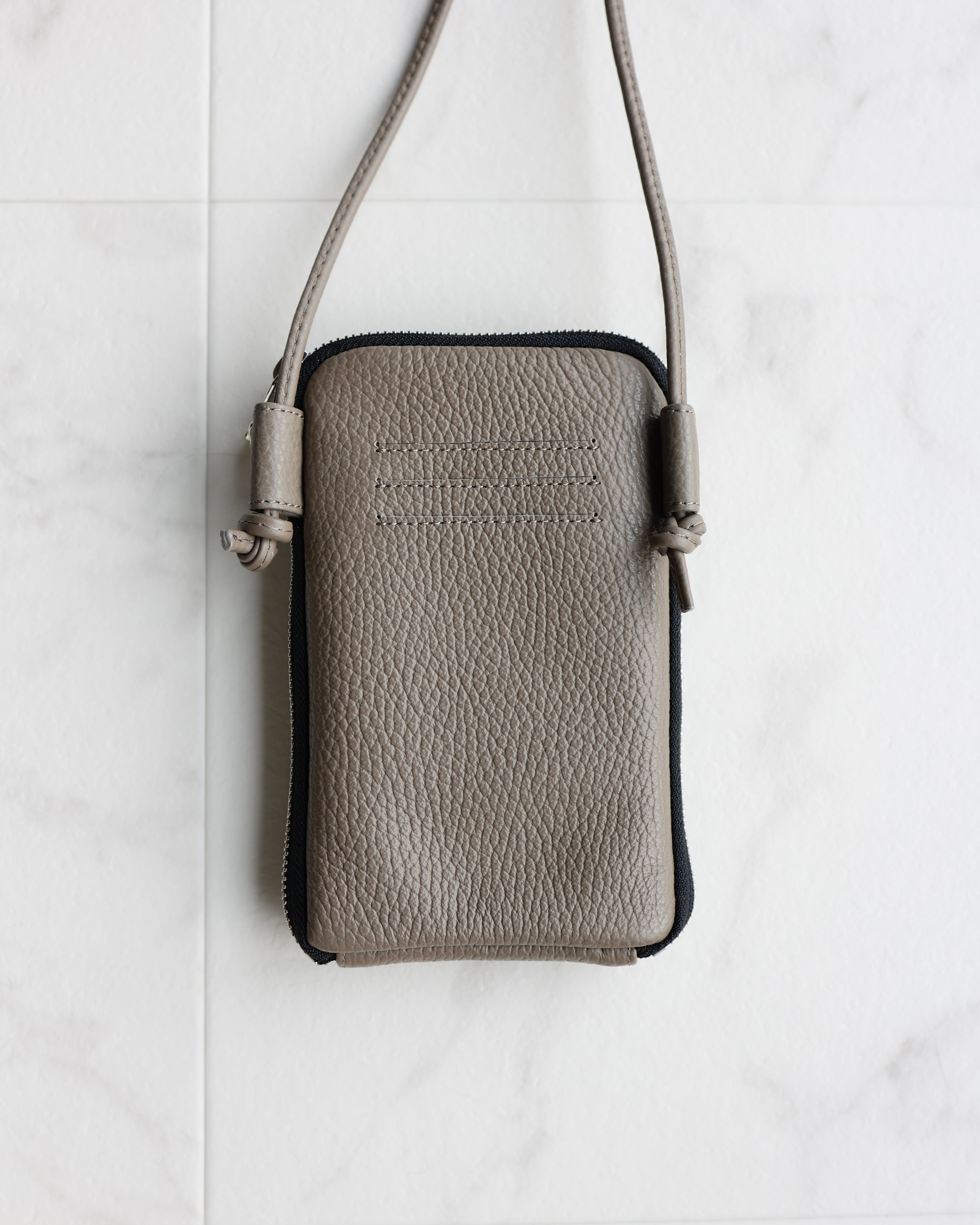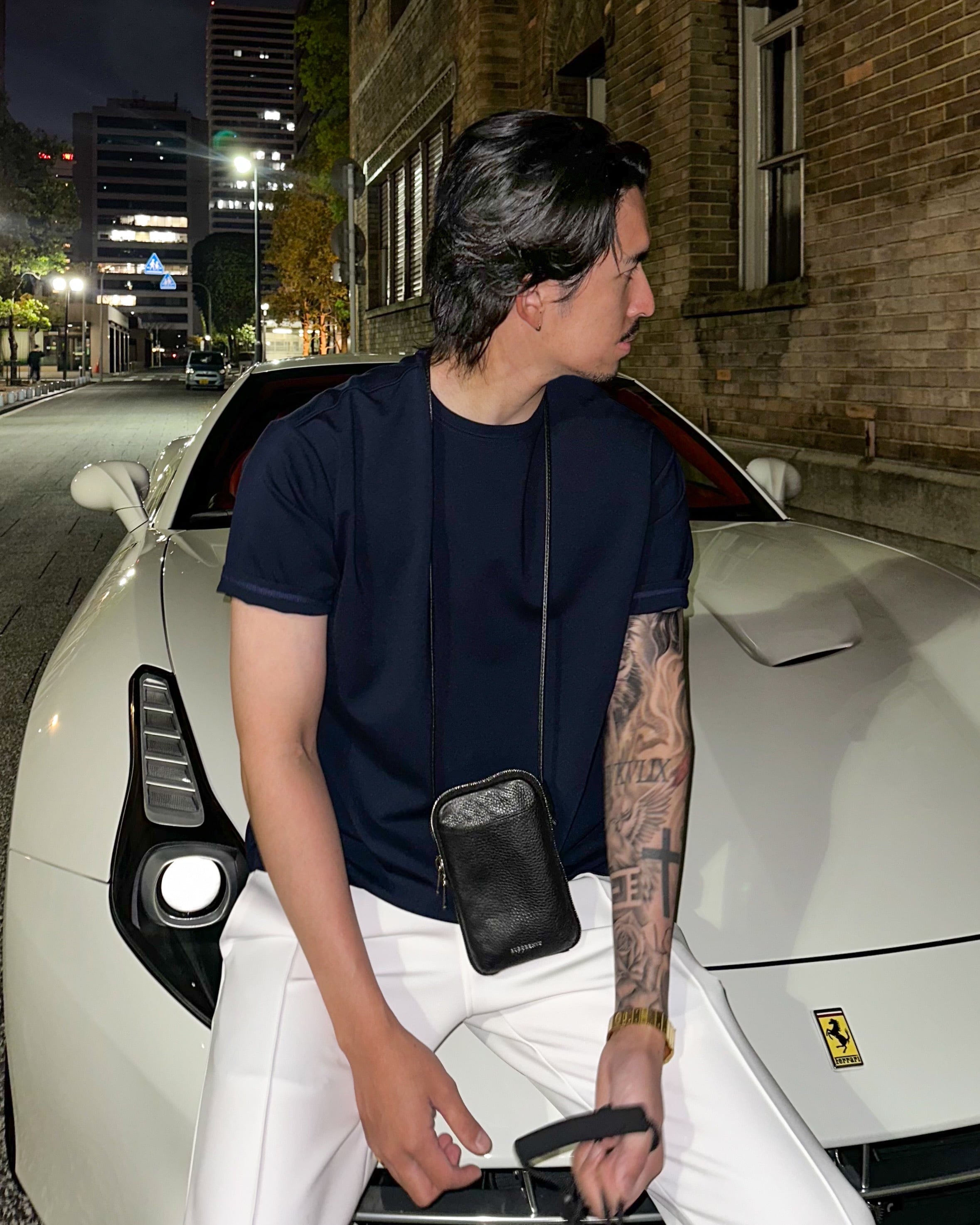 春夏は服の面積が狭くなる為、首からかけるレザーのポシェットがコーディネートの質を高めてくれます。